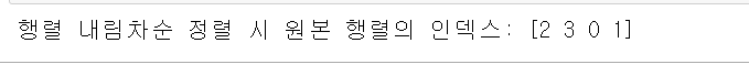 print('행렬 내림차순 정렬 시 원본 행렬의 인덱스:',sort_indices_desc)