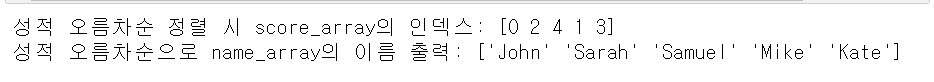 print('성적 오름차순으로 name_array의 이름 출력:',name_array[sort_indices_asc]