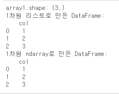 print('1차원 ndarray로 만든 DataFrame:\n', df_array1)