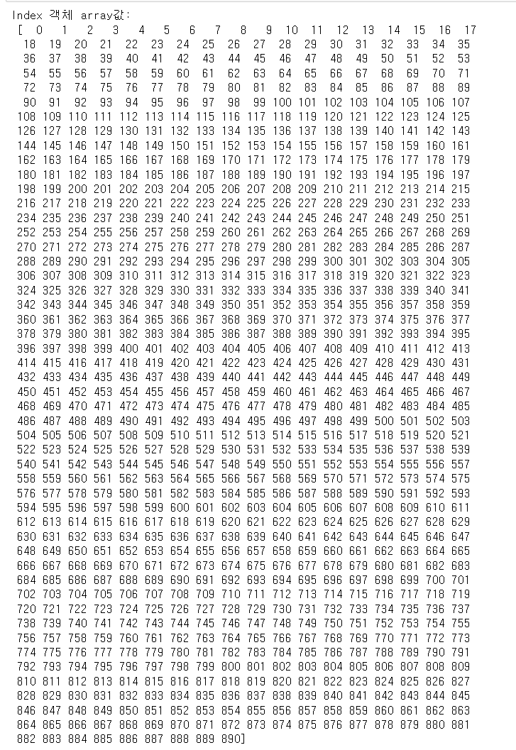 Index 객체는 식별성 데이터를 1차원 array로 가지고 있다.