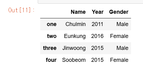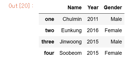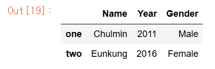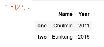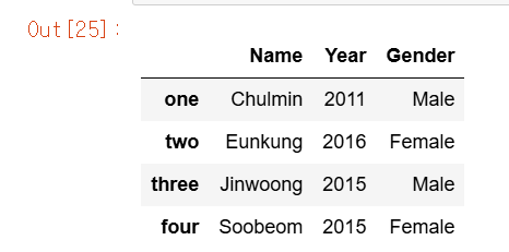 data = {'Name':['Chulmin','Eunkung','Jinwoong','Soobeom'],