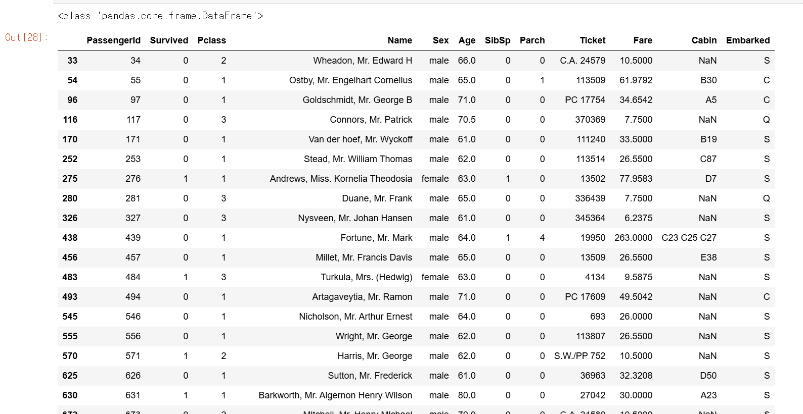 titanic_boolean = titanic_df[titanic_df['Age']>60]