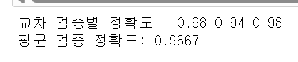print('평균 검증 정확도:',np.round(np.mean(scores),4))