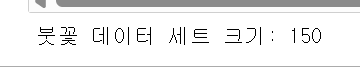 전체 붓꽃 데이터는 모두 150개인 것을 확인할 수 있다.