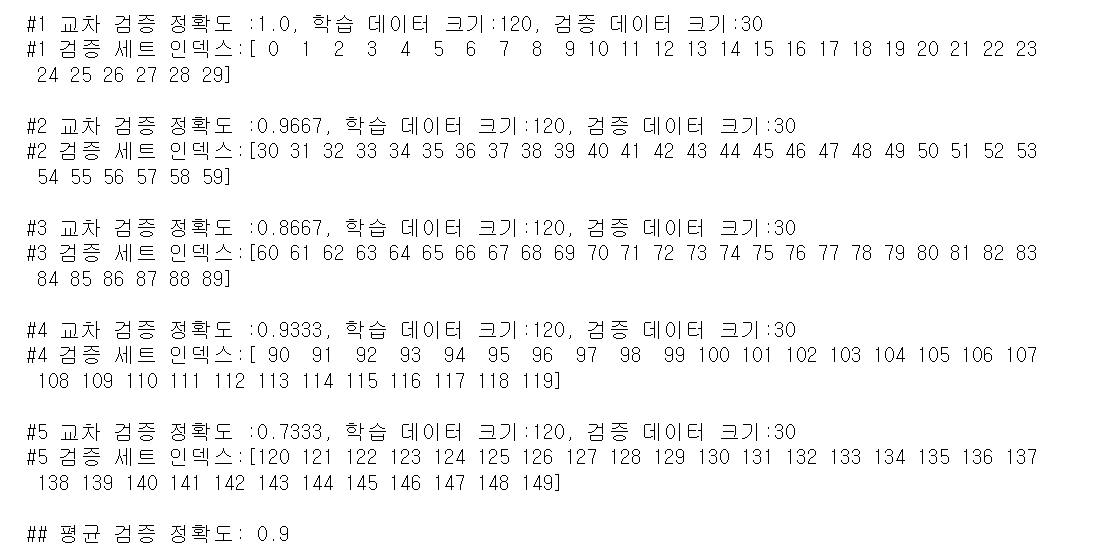 n_iter = 0 # n_iter는 현재 몇번째 교차 검증인지 세는 역할