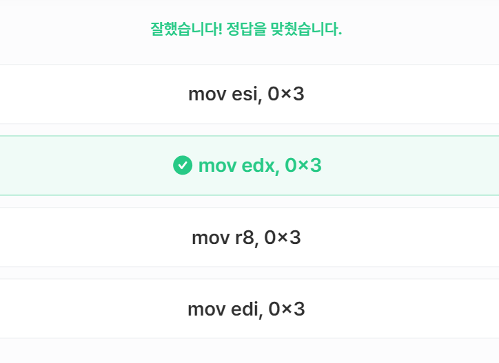 Q5는 세번째 인자가 rdx에 해당되므로 3을 rdx에 저장시킨다.