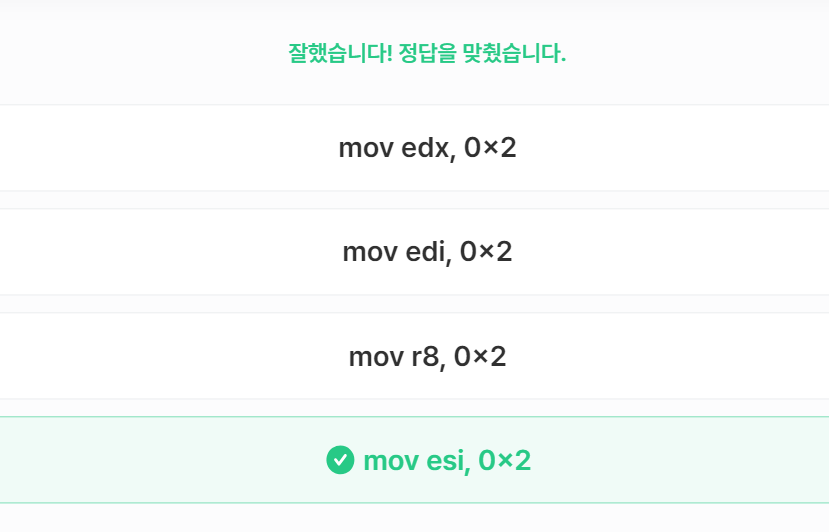 Q6은 두번째 인자가 rsi에 해당되므로 2를 rsi에 저장