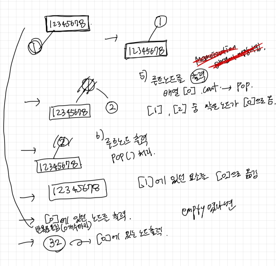 코드를 구현할 때 어려웠던 점은 "어떻게 queue가 비어지기전 마지막 수를 출력할것인가"이었다.