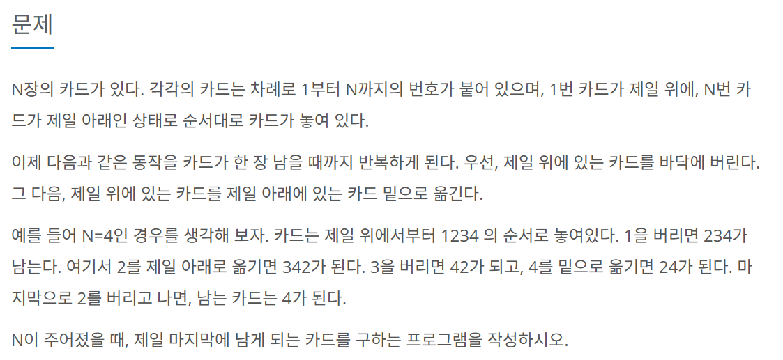 #2164 카드 2, C++ 사용