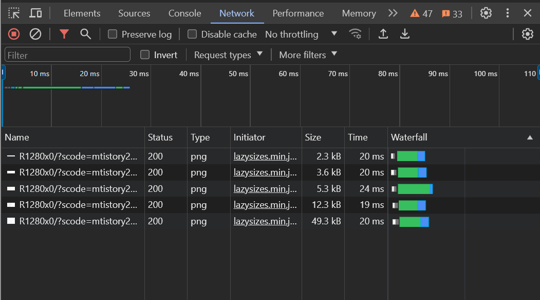 - 각 요청의 세부 정보와 시간을 확인하여 성능 최적화에 도움을 줌
