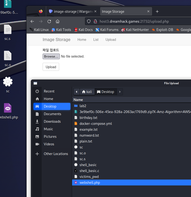 웹 셸을 업로드하면 오른쪽 이미지처럼 목록이 나오게 된다