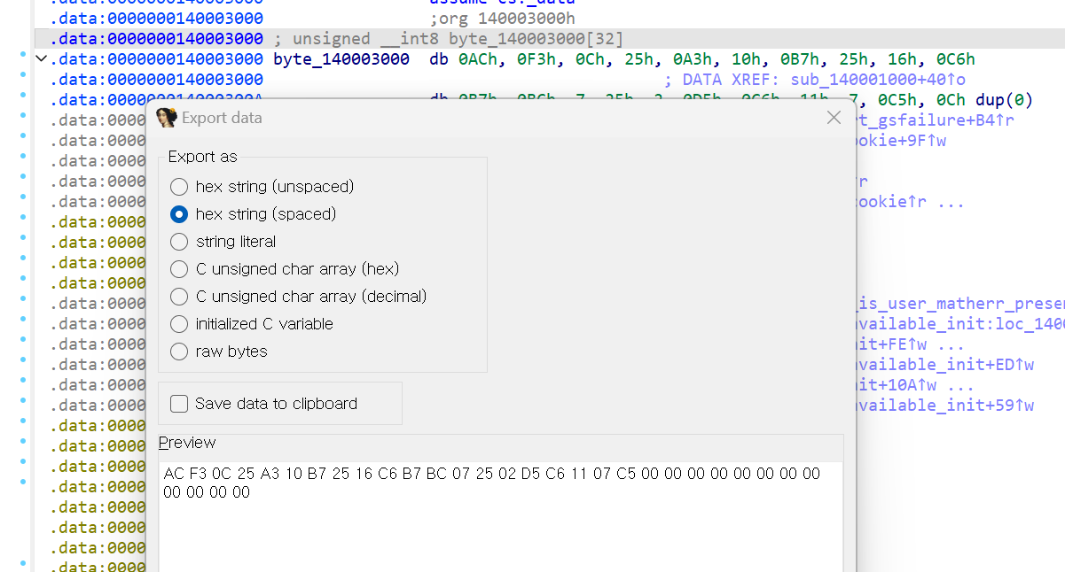 byte_140003000 = bytes.fromhex("AC F3 0C 25 A3 10 B7 25 16 C6 B7 BC 07 25 02 D5 C6 11 07 C5 00 00 00 00 00 00 00 00 00 00 00 00")