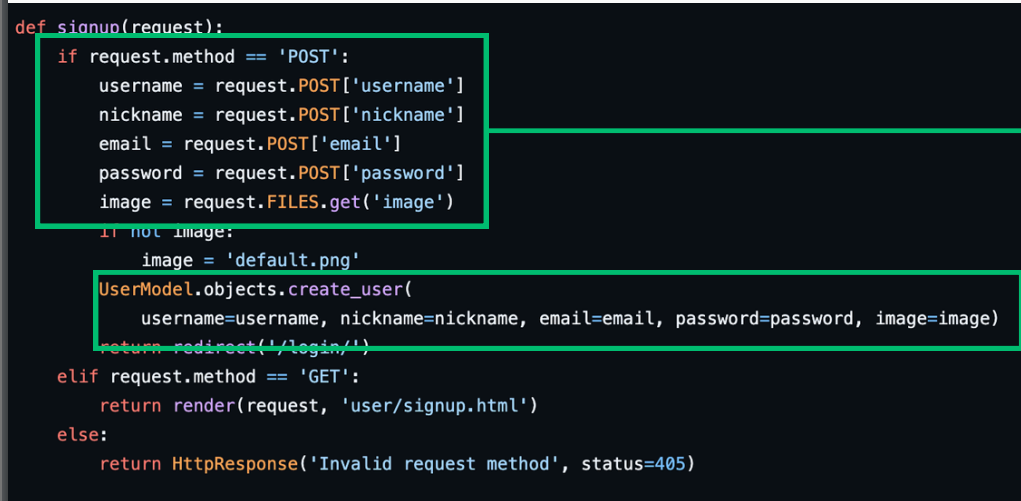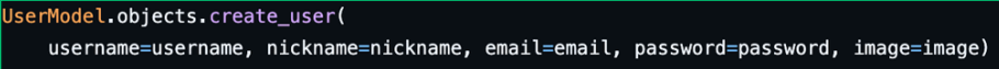create_user()을 통해 비밀번호 암호화 및 사용자 생성
