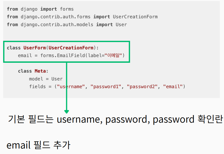 Django의 UserCreationForm 클래스는 django.contrib.auth form 패키지에 있으며,