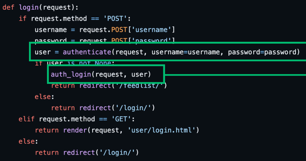 authenticate( ) : 요청과 일부 자격 증명을 인수로 받아, 자격 증명이 사용자에게 유효한 경우 User 객체를 반환