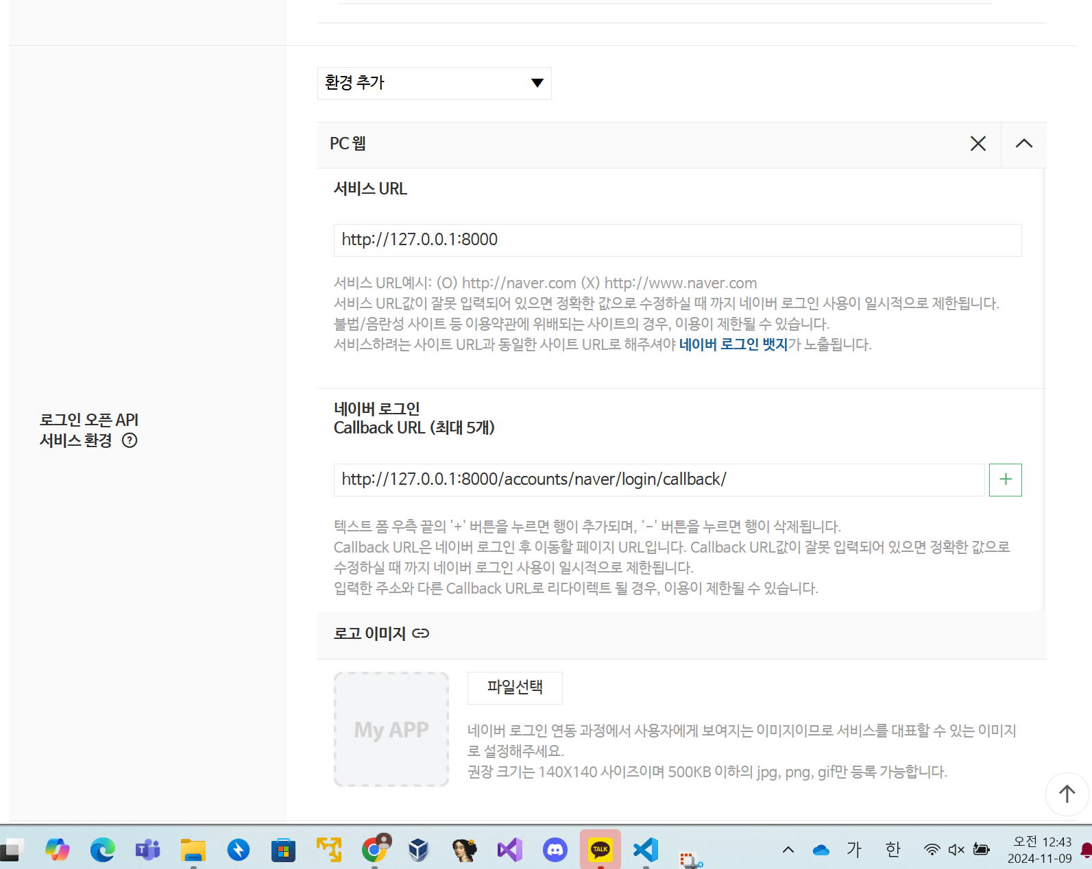 다음은 callback url을 입력(allauth를 사용했으니까 allauth 콜백을 입력)