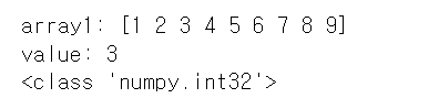array1[2]은 3번째 인덱스 위치의 데이터값을 의미함. array1[2]은 ndarray 내의 데이터값을 의미한다.