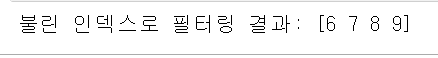 print('불린 인덱스로 필터링 결과:', array3)